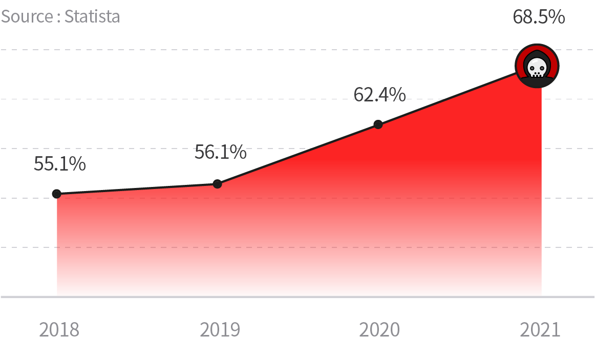 Percentage of organizations affected by ransomware