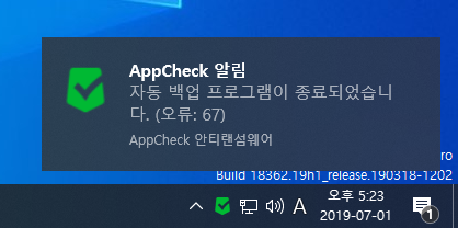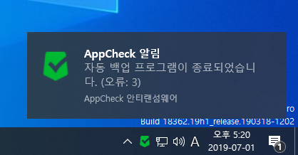 AppCheck 안티랜섬웨어의 자동 백업 기능에서 네트워크 경로를 발견할 수 없는 문제로 "자동 백업이 완료되었습니다. (오류: 53)" 메시지가 생성됩니다.