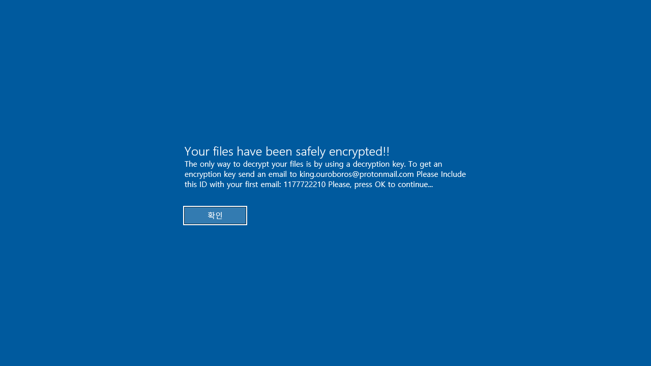 안티랜섬웨어 전문 기업 체크멀(대표 김정훈)은 윈도우 로그온 화면에 메시지를 표시하는 King Ouroboros 랜섬웨어가 확인됐다고 25일 밝혔다.