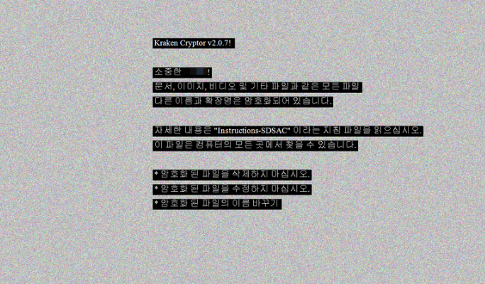 안티랜섬웨어 전문 기업 체크멀(대표 김정훈)은 Kraken Cryptor 랜섬웨어가 꾸준한 버전 업데이트를 통해 한국어 메시지까지 추가한것으로 확인됐다고 23일 밝혔다.