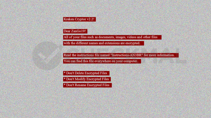 Kraken Cryptor 랜섬웨어(v2.2)에 감염되면 암호화된 파일이 위치한 폴더마다 결제 안내 파일이 생성된다. 새롭게 추가된 텍스트 음성 변환(TTS) 기능으로 "All of your files such as documents, images, videos and other files with the different names and extensions are encrypted by KRAKEN CRYPTOR ransomware" 문구를 총 5회 반복 출력한 후 종료 및 삭제 처리한다.