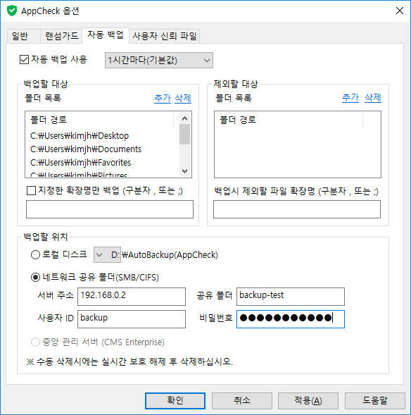 <앱체크는 NAS와 윈도 공유 폴더 등을 지원하는 원격지 백업 기능을 추가했다.>