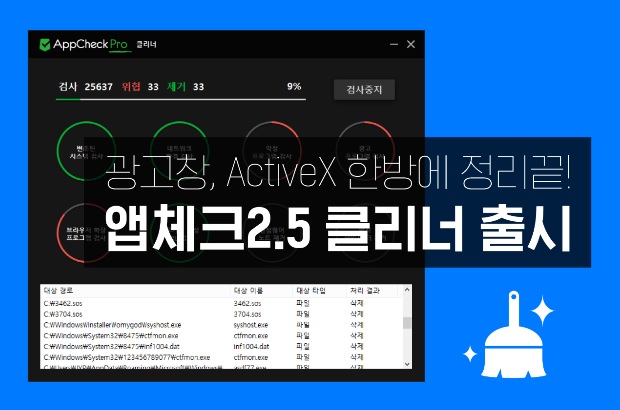 이번 앱체크 2.5 버전에 추가된 클리너 기능은 랜섬웨어 제거 기능뿐만 아니라 일반적인 악성코드를 포함하여 애드웨어, 스파이웨어와 같은 사용자가 원하지 않는 애플리케이션(PUP/PUA)을 모두 제거한다. 또한 위협 요소에 의해 변경된 서비스와 레지스트리를 기존상태로 되돌려 PC 성능을 최적화 하고, 불필요한 임시 파일을 제거하여 디스크 용량을 최적화 한다.