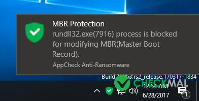 The MBR modification results to display fake CHKDSK message and Ransomware message, AppCheck Pro blocks the behavior as follows.