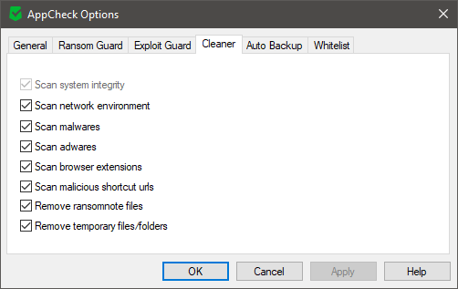 With newly featured Cleaner, AppCheck Anti-Ramsomware now provides real-time ransomware protection, guards applications from exploits, removes malwares and adwares(PUP/PUA) and boosts up your PC.