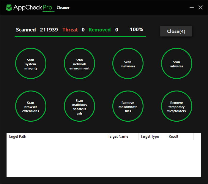 AppCheck Cleaner features system integrity scan, network environment scan, malware scan, adware scan, browser extension scan, malicious shortcut url scan, ransomnote files removal, and temporary file/folder removal features. Through multiple scanners, AppCheck Cleaner removes various malicious codes, ransomware, and other temporary files and folders that are unnecessary on your PC.