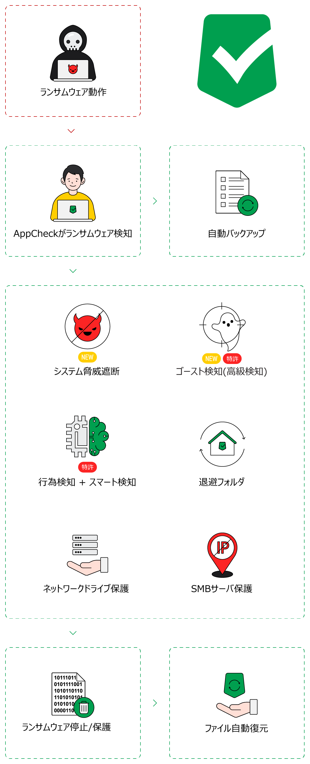 高級検知機能(ゴースト検知、スマート検知)でランサムウェア遮断機能を強化